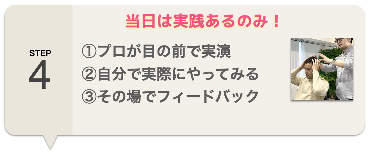 動画では学べない、体感でしか得られない技術がここにあります。