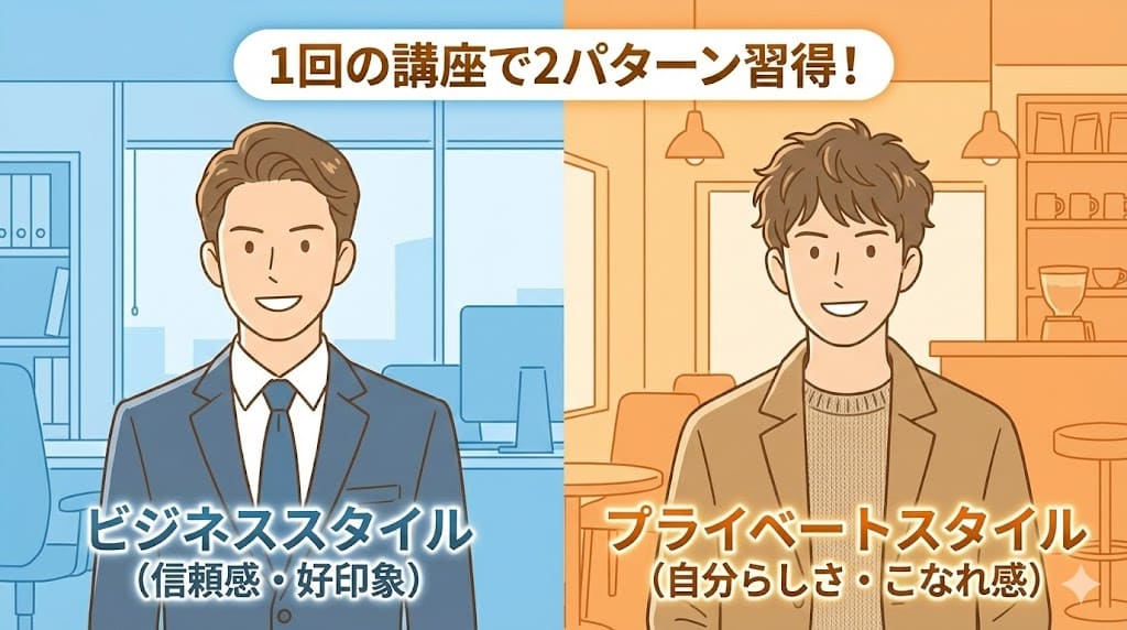 1回の講座で、TPOに合わせた2つのスタイリングをマスター